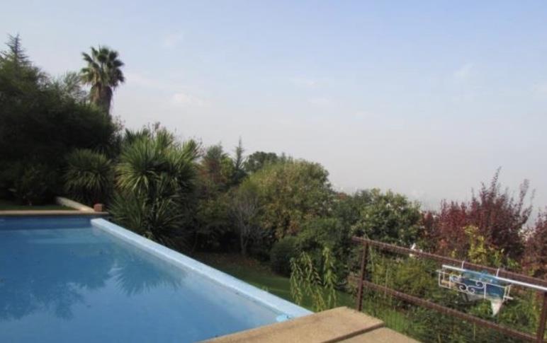 Excelente Casa en Santa Maria de Manquehue, Estilo Mediterránea con linda vista, 1.200 metros de terreno,Living Comedor separados,Baño visita, Cocina con comedor de diario, Lavadero, 4 dormitorios todos en suite, Sala de TV , Dormitorio Principal con terraza y Walk-In Closte, 2 estacionamiento techados,jardín con riego automático,Piscina,Sauna,Cerco eléctrico, 2 dormitorios de servicio. Calefacción Central, con radiadores.