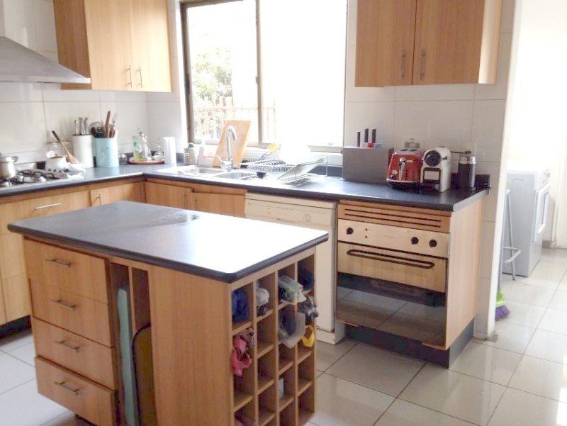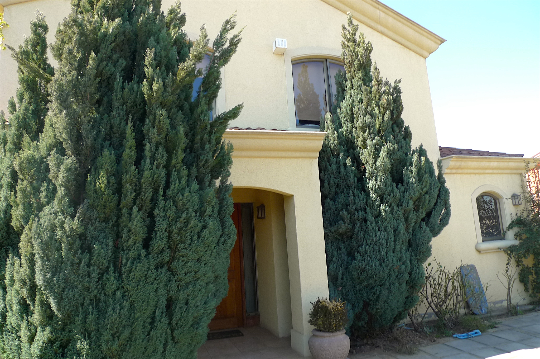 Casa de dos pisos en barrio tranquilo con orientación N/O Primer Piso: Hall de entrada con cerámica baño de visitas, cocina equipada con isla logia techada dormitorio y baño servicio todo con piso flotante Dormitorio principal en suite con salida terraza y walk in closet, otro dormitorio que se puede usar de escritorio con closet living y comedor separados con salida terraza techada, jardín formado y piscina. Segundo Piso: Tres dormitorios de buen tamaño con dos baños con ventana y una sala de estar. Estacionamiento para dos autos adentro.