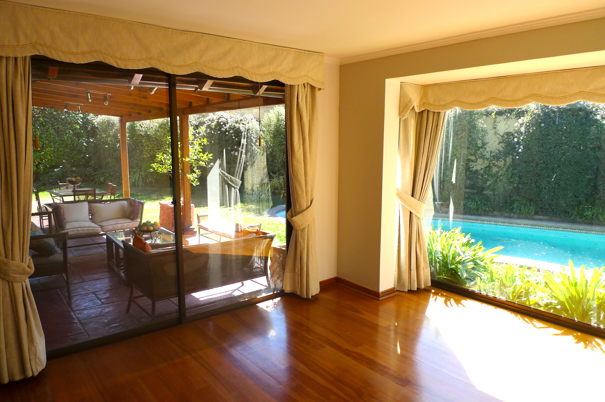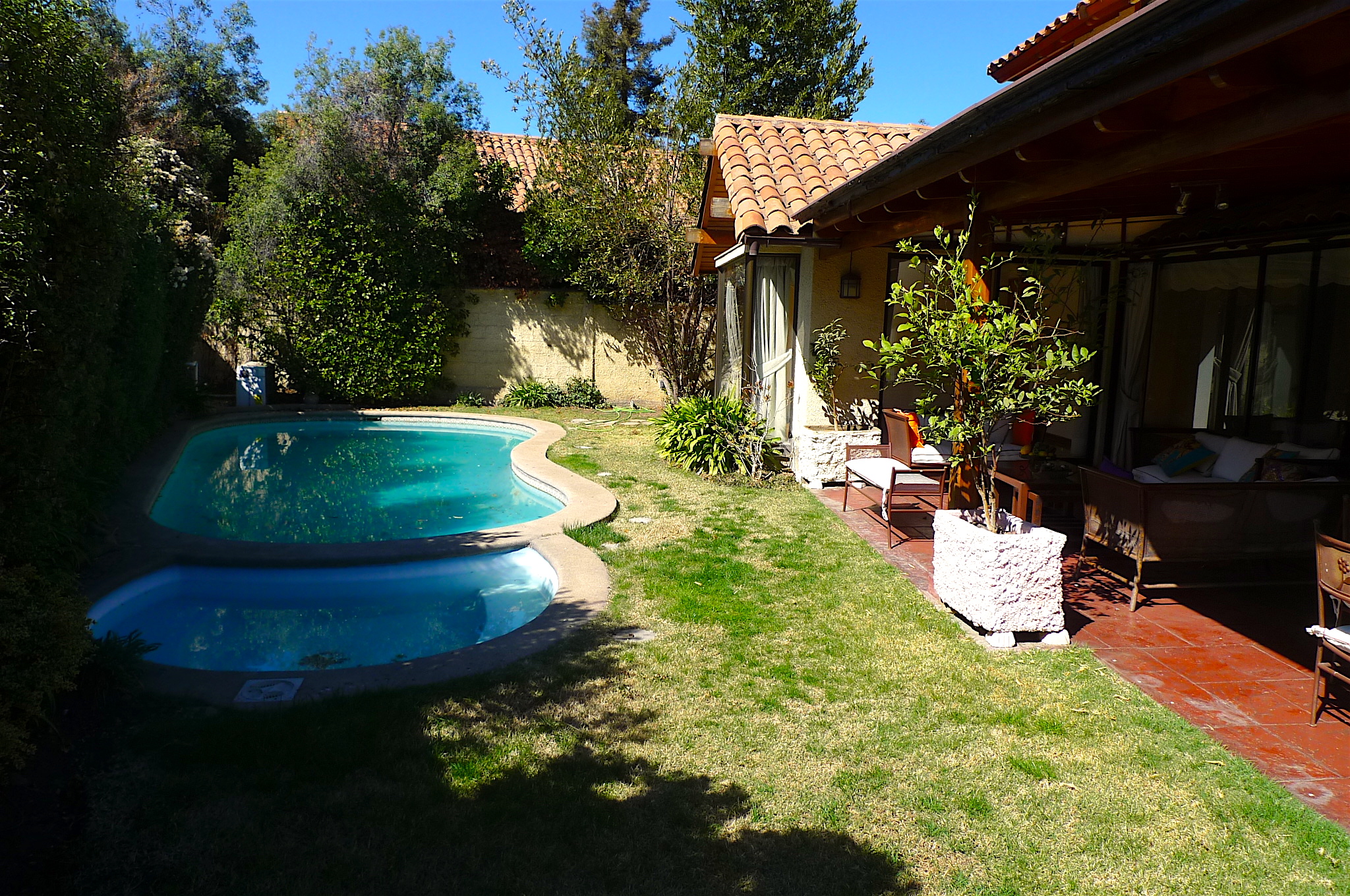 Excelente casa en estupendo Condominio estilo Chileno, tranquila zona en Valle la Dehesa, orientación Oriente muy luminosa, en el primer piso cuenta con hall de entrada piso de Mármol, baño de visitas, cocina amoblada con comedor de diario, amplia Logia techada, dormitorio y baño de servicio, amplio Living y comedor separados con salida a la terraza techada con jardín y piscina, dos dormitorios principal en suite con walking closet y salida a terraza jardín, otro dormitorio de muy buen tamaño con baño privado. El segundo piso tiene dos amplios dormitorios mas una sala de estar y baño completo, también cuenta con calefacción central, alma y seguridad del condominio 24/7, estacionamiento para 2 autos. Mapa de ubicación Datos de mapas ©2018 Google Términos de uso Notificar un problema de Maps MapaSatélite ¿Qué dirección quieres mostrar en la publicación? Dirección para publicar Ubicación: av parque con Parque sur Región: Región Metropolitana Comuna: Lo Barnechea Dirección real Horario de visita Comentarios Agregar a orden de visita