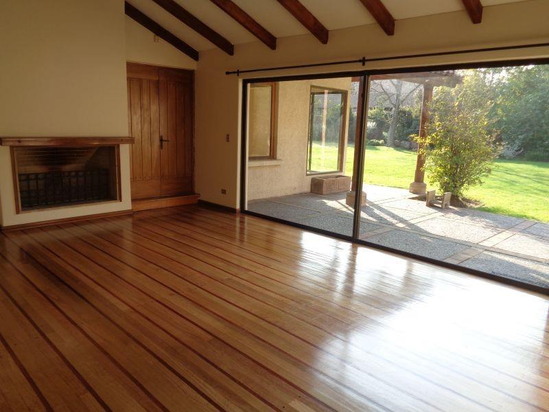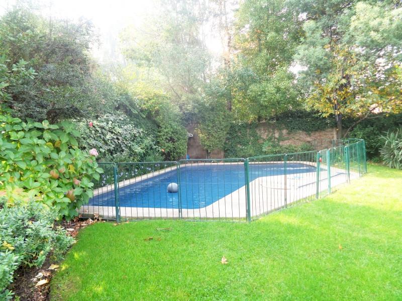 Casa de dos pisos estilo chileno cerca clínica Meds la Dehesa centros comerciales y colegio Newland. Primer Piso : Hall de entrada living y comedor separados con piso de madera ,baño de visitas cocina de buen tamaño con comedor de diario ,logia techada ,dos dormitorios de servicio con un baño. Un escritorio ,sala estar,tres dormitorios el principal en suite con jacuzzi,dos baños amplio jardín con juegos terraza y piscina Segundo Piso: Un dormitorio de muy buen tamaño o sala de estar ,closet y baño completo . La casa tiene estacionamientos para 6 autos tres techados calefacción central por radiadores, caldera a gas y entrada por dos avenidas, cerco eléctrico ,alarma. Con terreno de 2.500 metros.