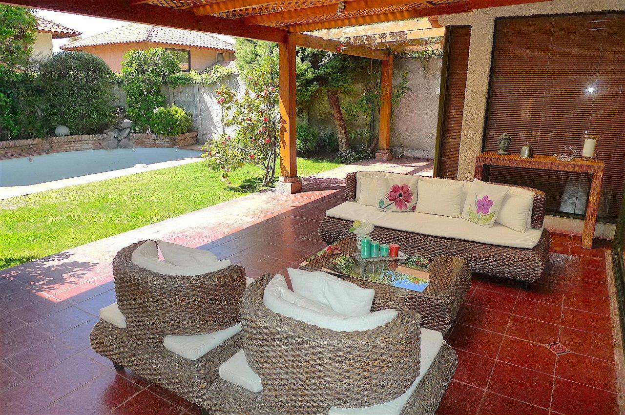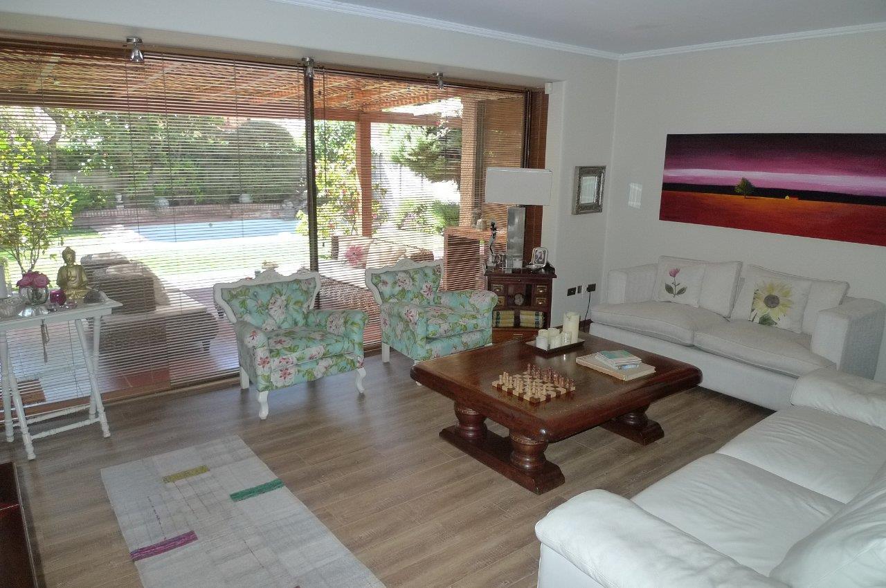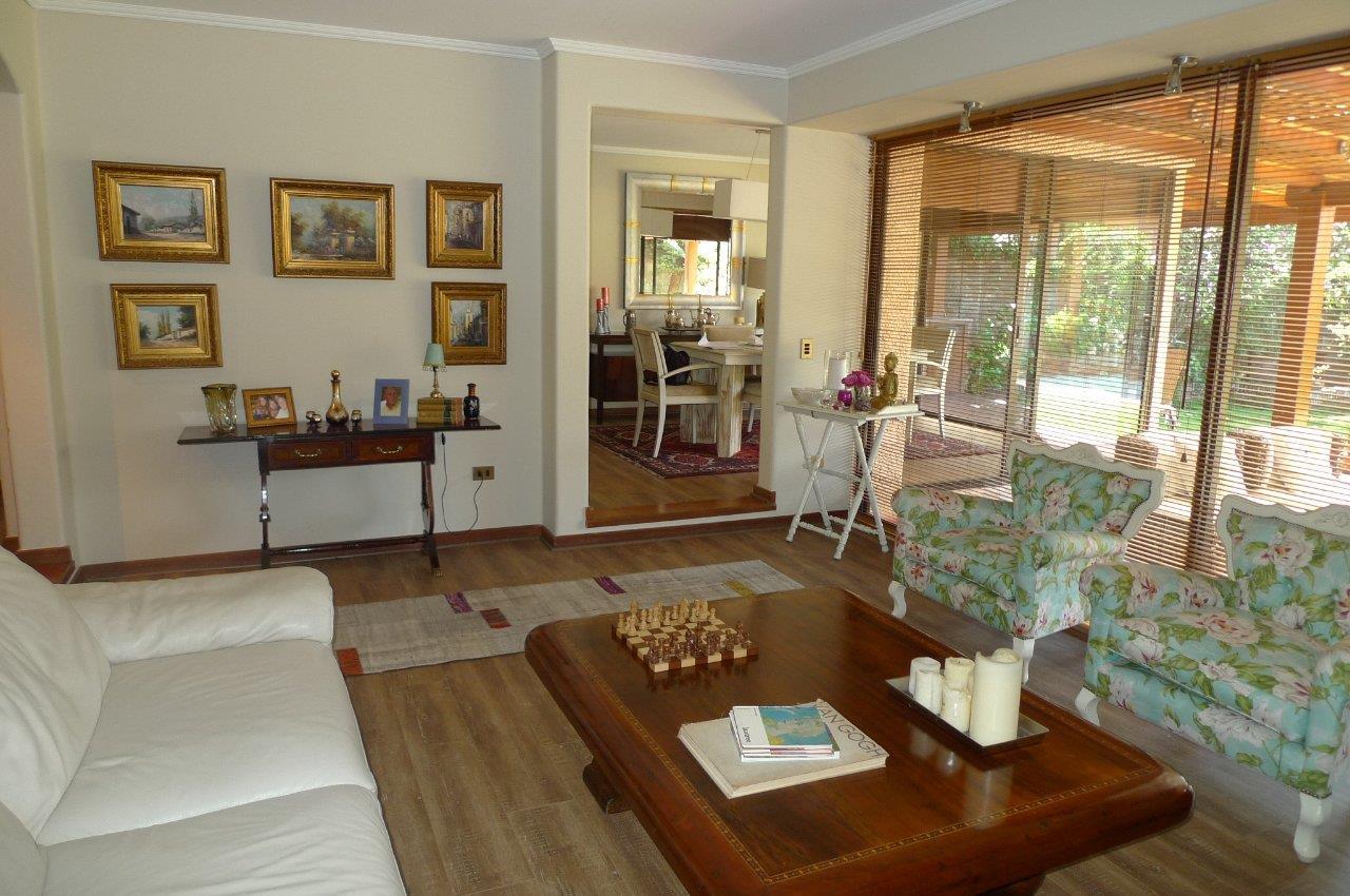 En impecable estado, ubicada en Manquehue Oriente, inmejorables accesos. Casa en tres niveles. Primer nivel (calle): hall de acceso,baño de visitas, living y comedor a parte con salida a terraza techada, jardín formado, piscina y quincho. Dos suite, la principal con baño con jacuzzi. Amplia y moderna cocina con comedor de diario, logia cerrada y servicios completos. Segundo piso: sala de estar, dos dormitorios y un baño. Nivel Subsuelo: Enorme sala de estar (ideal sala de cine) y un baño. Estacionamiento techado para dos autos.
