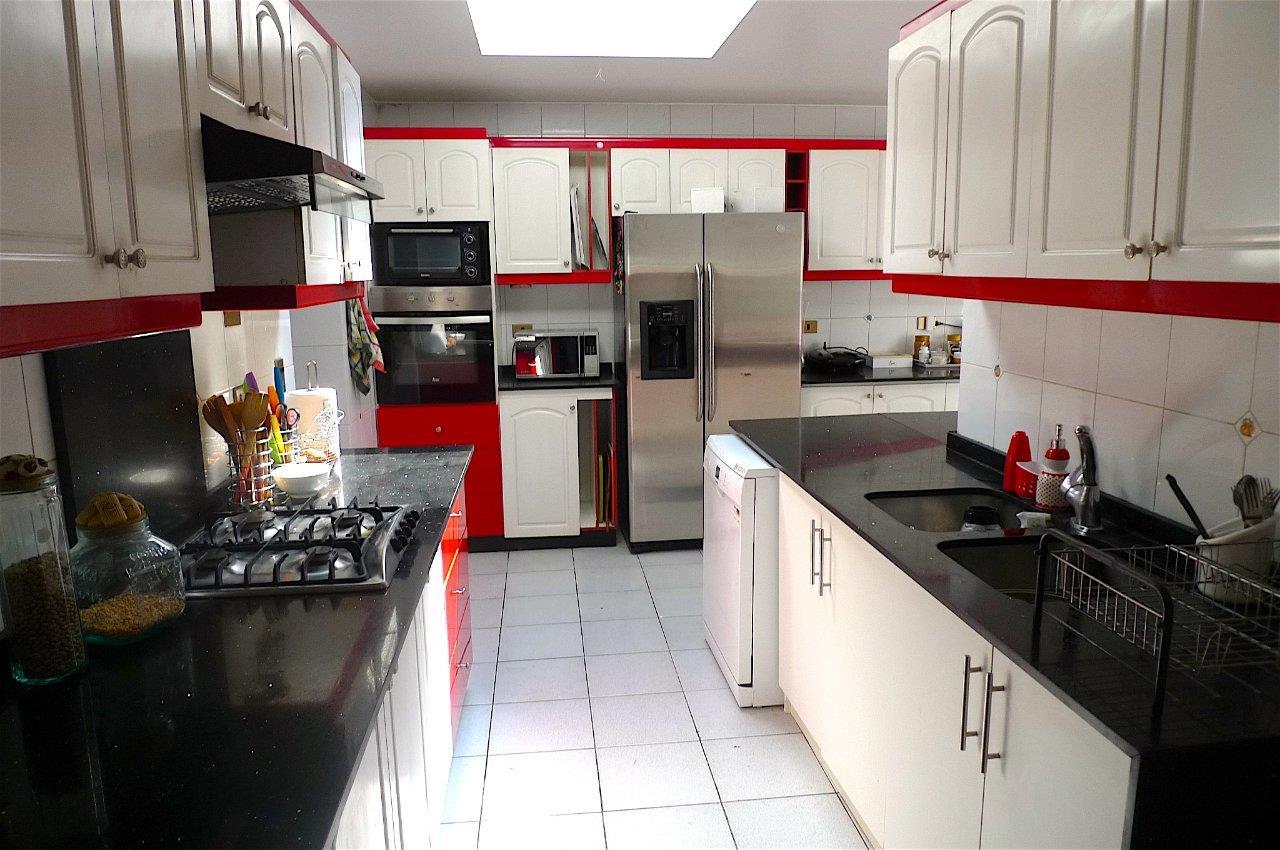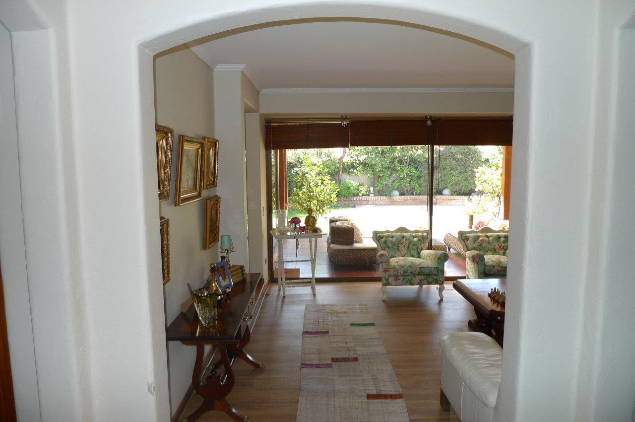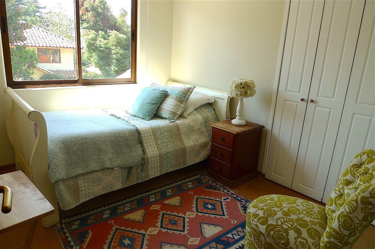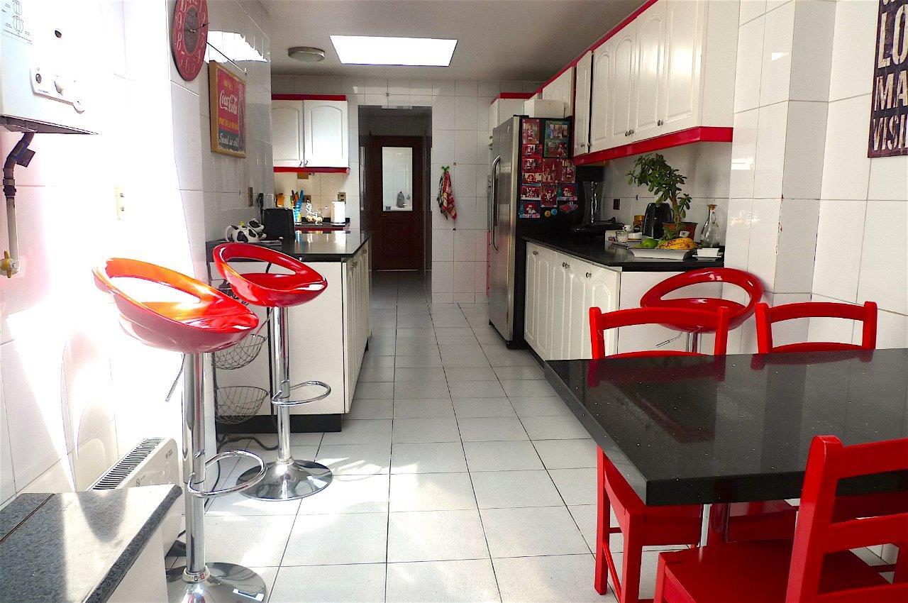 En impecable estado, ubicada en Manquehue Oriente, inmejorables accesos. Casa en tres niveles. Primer nivel (calle): hall de acceso,baño de visitas, living y comedor a parte con salida a terraza techada, jardín formado, piscina y quincho. Dos suite, la principal con baño con jacuzzi. Amplia y moderna cocina con comedor de diario, logia cerrada y servicios completos. Segundo piso: sala de estar, dos dormitorios y un baño. Nivel Subsuelo: Enorme sala de estar (ideal sala de cine) y un baño. Estacionamiento techado para dos autos.