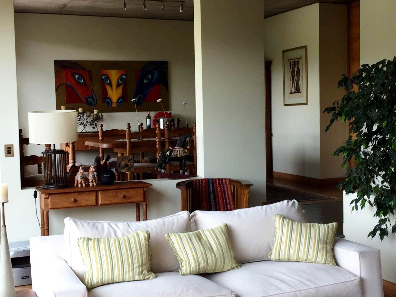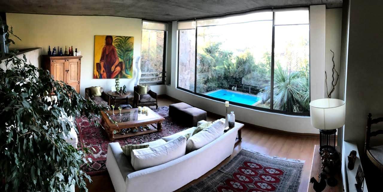 En impecable estado, ubicada en Manquehue Oriente, inmejorables accesos. Casa en tres niveles. Primer nivel (calle): hall de acceso,baño de visitas, living y comedor a parte con salida a terraza techada, jardín formado, piscina y quincho. Dos suite, la principal con baño con jacuzzi. Amplia y moderna cocina con comedor de diario, logia cerrada y servicios completos. Segundo piso: sala de estar, dos dormitorios y un baño. Nivel Subsuelo: Enorme sala de estar (ideal sala de cine) y un baño. Estacionamiento techado para dos autos.