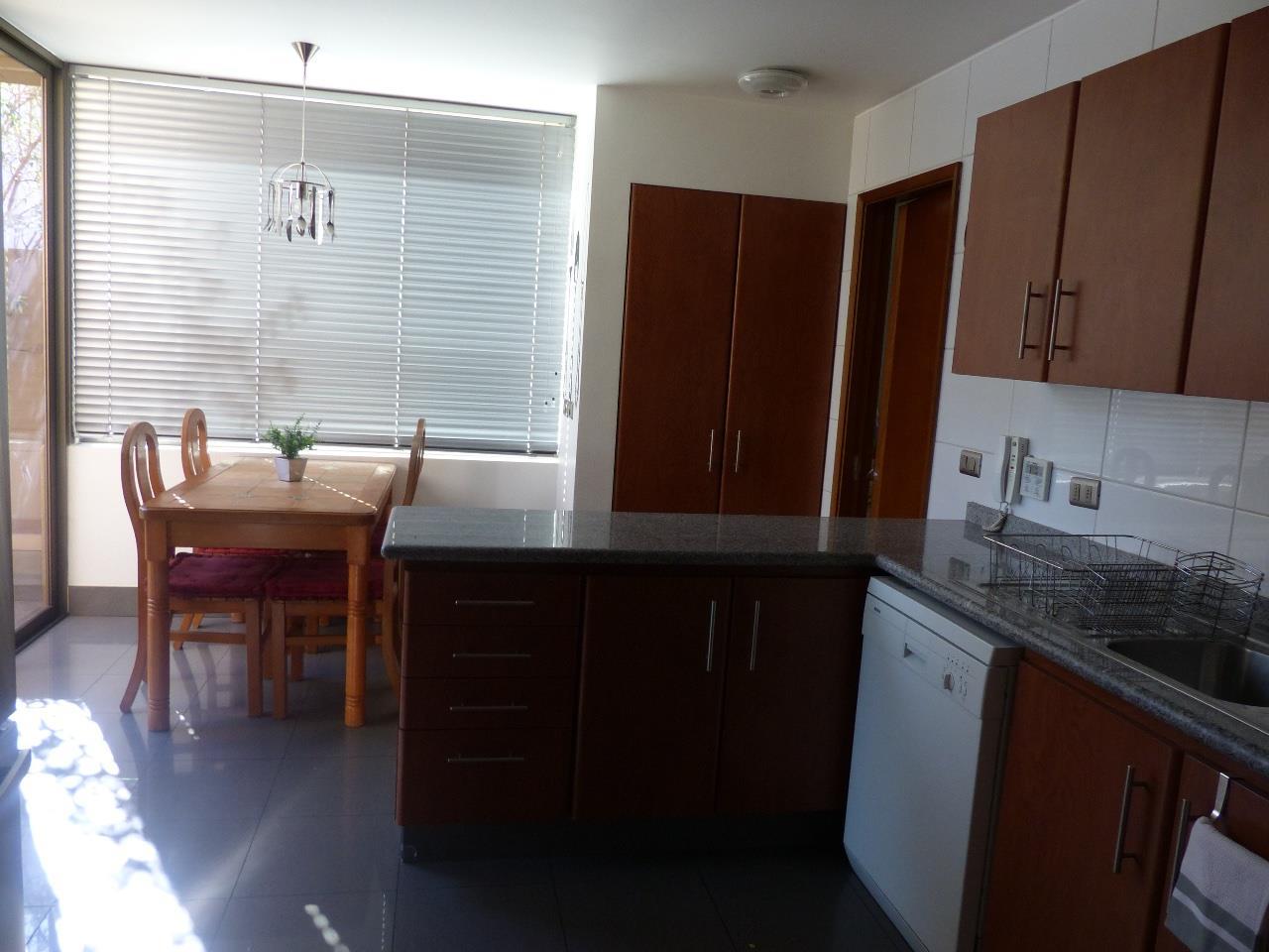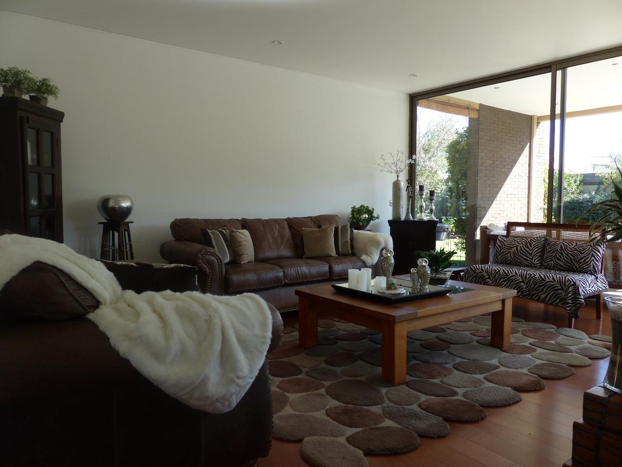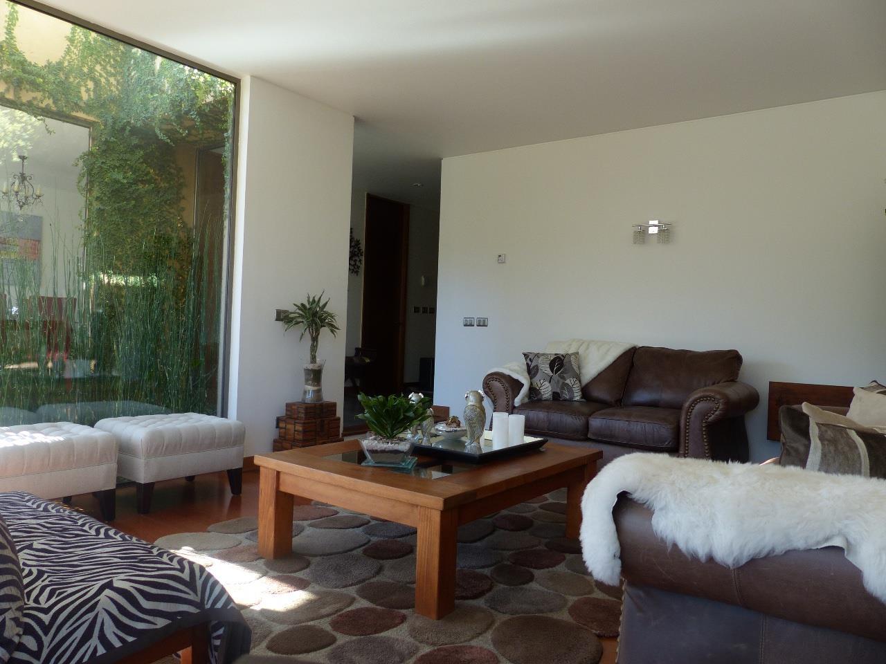 Linda casa en condominio Los Bravos. Interior primer piso: Hall de distribución, living comedor separado, baño de visita, cocina amoblada cubiertas de granito, servicios completos y logia techada. Dormitorio principal en suite, walking closet y escritorio. Segundo Piso: Amplia sala de estar, tres dormitorios, uno en suite más otro baño completo y escritorio o quinto dormitorio. Exterior: Lindo jardín, piscina con paneles solares, terraza techada, toldos luxaflex en ventanas y estupendo quincho. Estacionamiento para tres autos. Seguridad 24 horas.