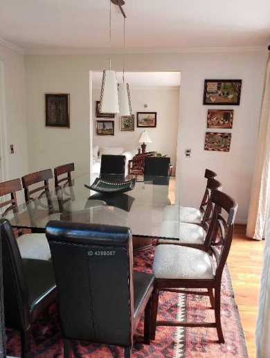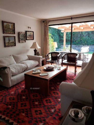Estupenda casa ubicada en unos de los lugares privilegiados de lo Barnechea cercana al jardín infantil Vitamina,colegios y comisaria. Casa de dos pisos estilo chileno Primer Piso: hall de entrada baño de visita, con closet living y comedor separados de buen tamaño con salida a terraza techada con jardín formado piscina. Cocina con isla al medio recién remodelada cubierta granito con una logia techada ,caldera y calefón nuevos, dormitorio y baño de servicio toda la casa con piso flotante. Dormitorio principal ampliado con escritorio y en suite de un buen tamaño con walk in closet . Segundo Piso: sala de estar tres dormitorios con vista despejada y un baño con ventana. Con Orientación oriente y con estacionamientos para cuatro autos cómodamente . La casa esta en muy buenas condiciones.