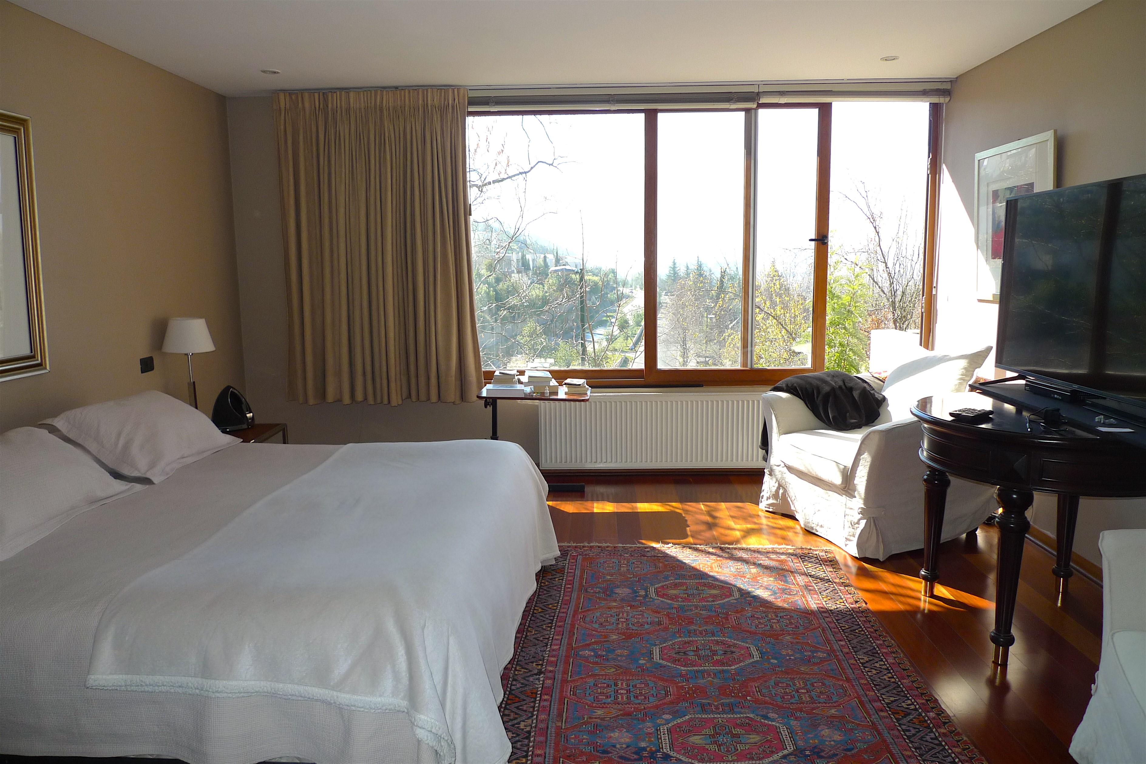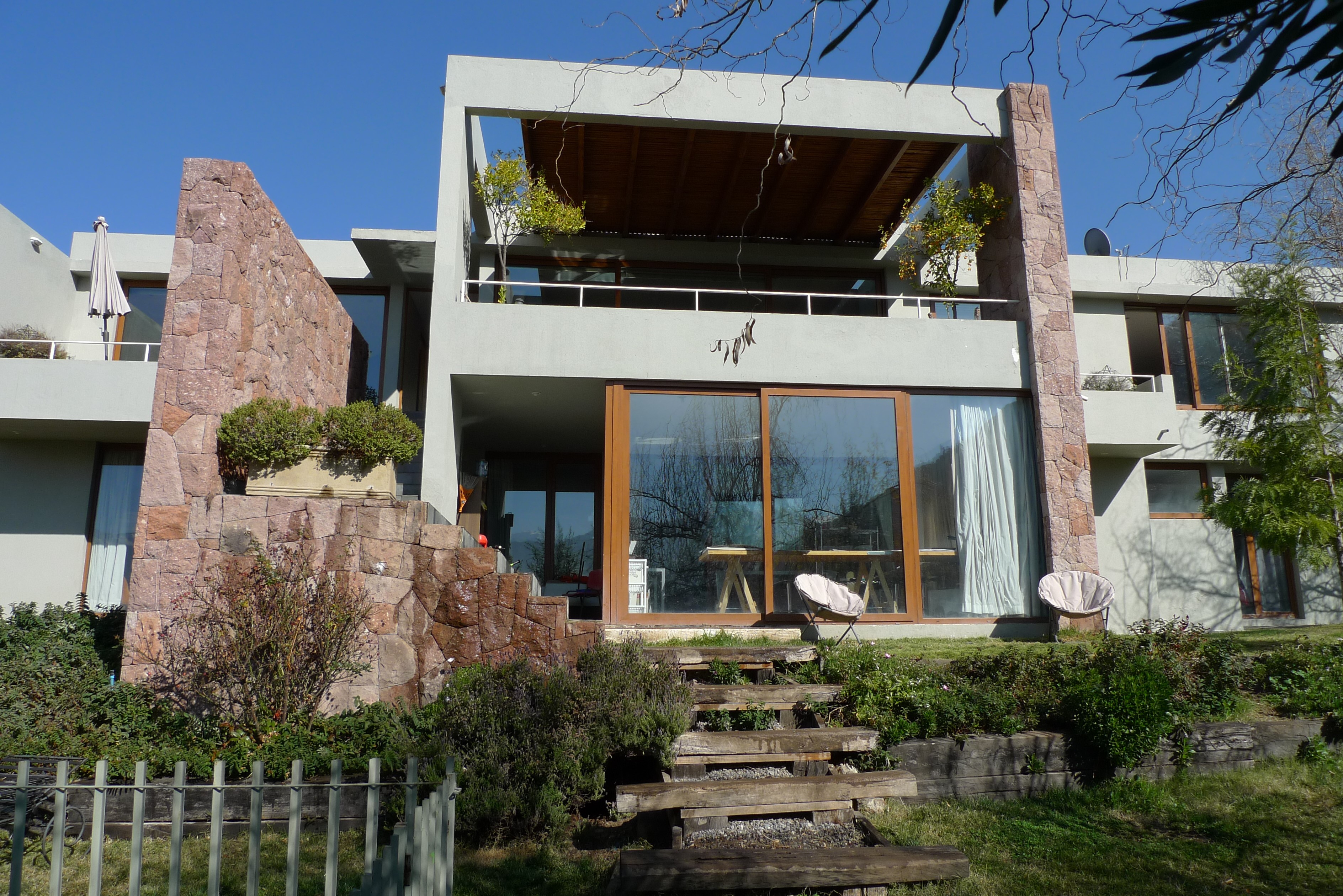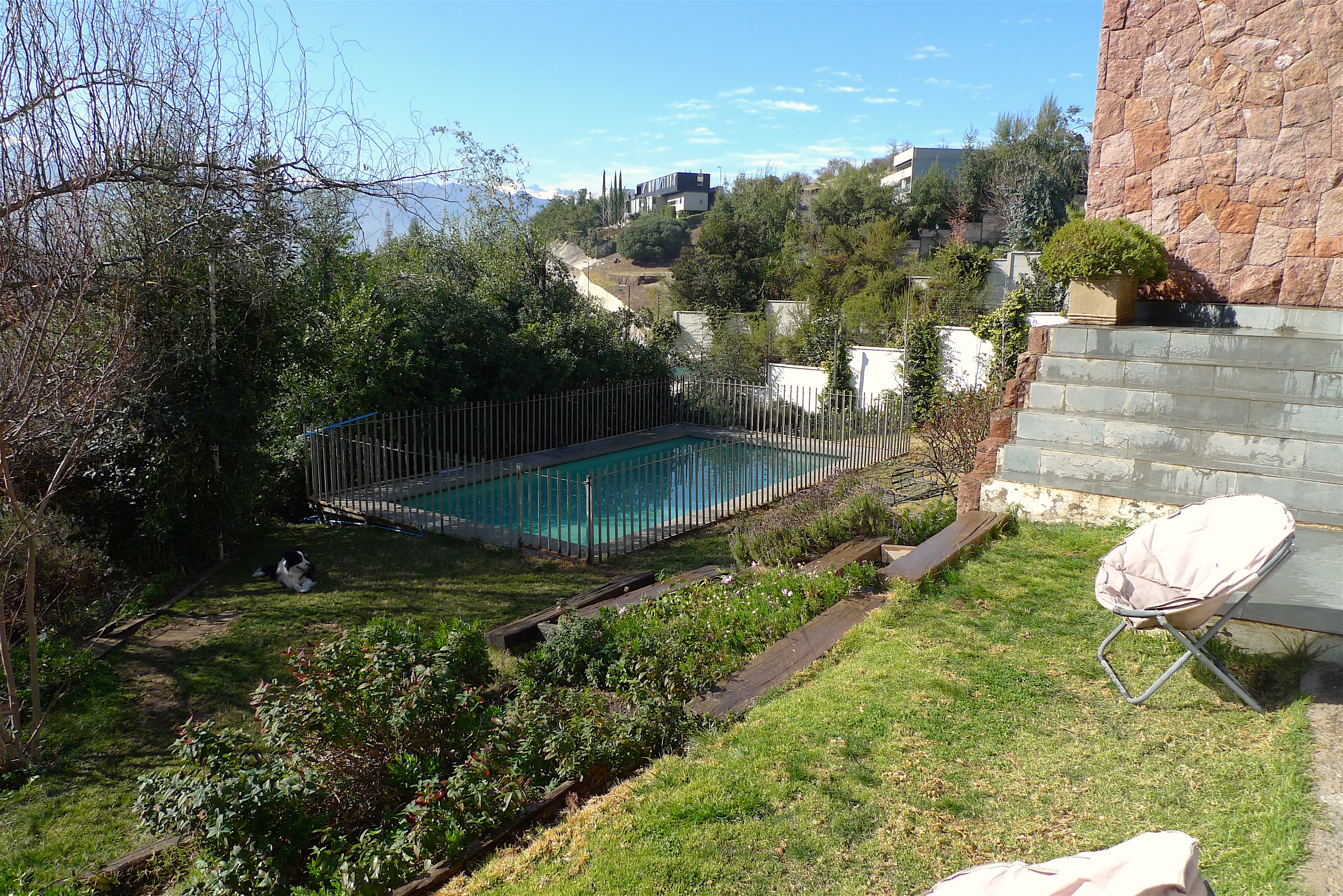 Casa de dos pisos mediterránea al lado del colegio Everest con buena locomoción y conectividad, orientación nor-oriente Primer Piso: Amplio hall de entrada con piedra pizarra ,baño de visitas living y comedor separados con salida a la terraza ,cocina con comedor de diario despensa y logia techada, servicios completos. todos los dormitorios con piso flotante y living y comedor con piso de madera ,dos terrazas. Dos dormitorios en suite el principal con walking closet de un buen tamaño con buena vista y un escritorio toda la casa con ventanas de termopanel. Planta Baja : Una sala de estar, mas un taller y cuatro dormitorios con dos baños completos. Lindo jardín formado con piscina riego automático, cerco eléctrico en toda la casa y hot-tub en el jardín. Dos estacionamientos bajo techo y dos sin techo.