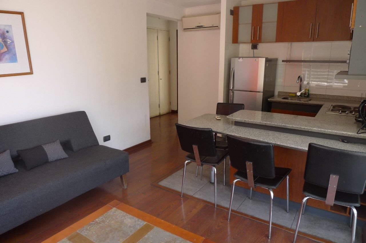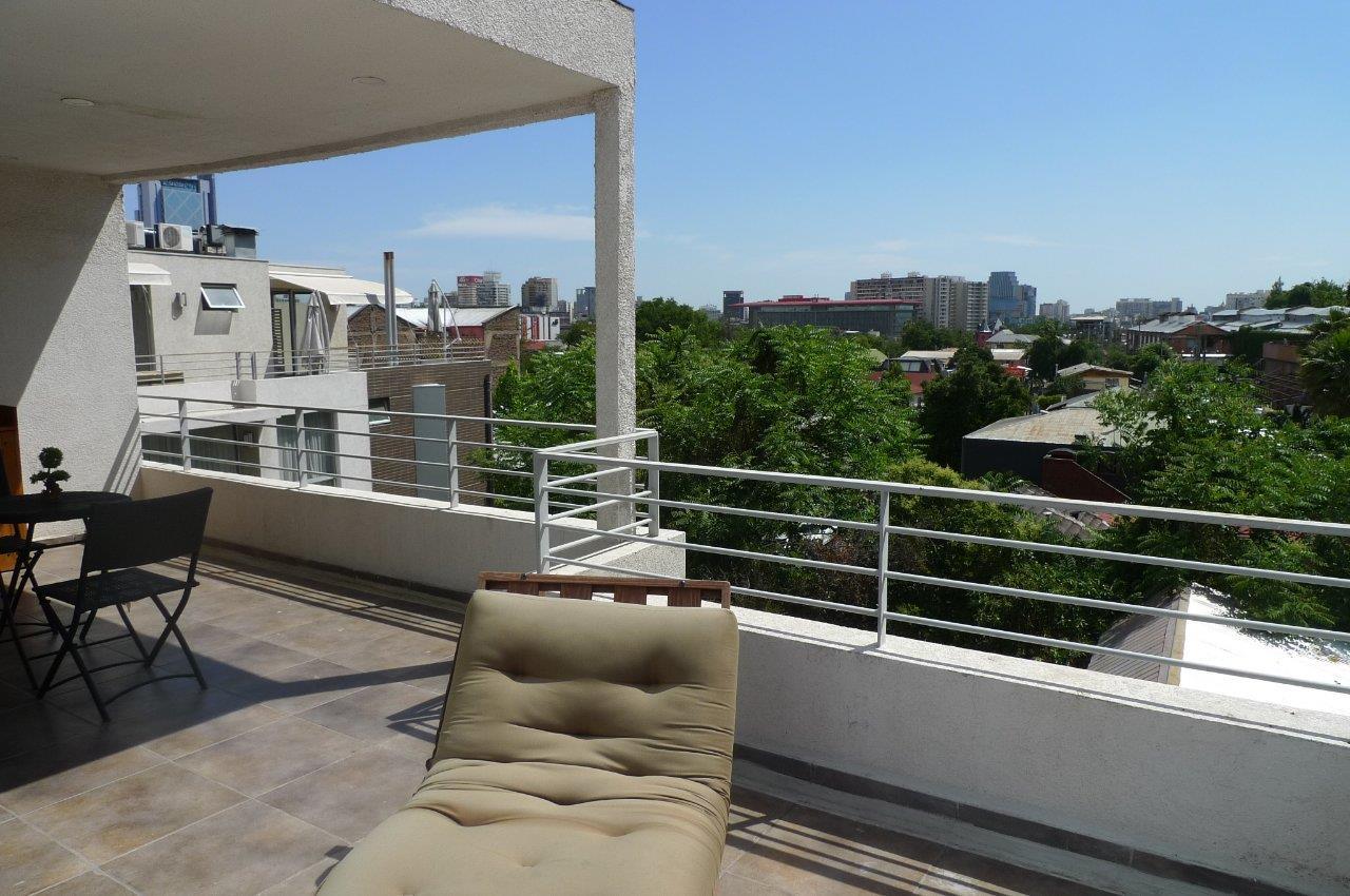 Oportunidad para inversionistas, se encuentra arrendado y puede mantenerse en esas condiciones. Cercano a canales de televisión y Clínica Santa María. Gran conectividad, pero emplazado en calle tranquila y sin ruido. Dos dormitorios, uno en suite y un baño. Cocina americana, integrada al estar. Rodeado de amplias terrazas de vista despejada, quincho techado.