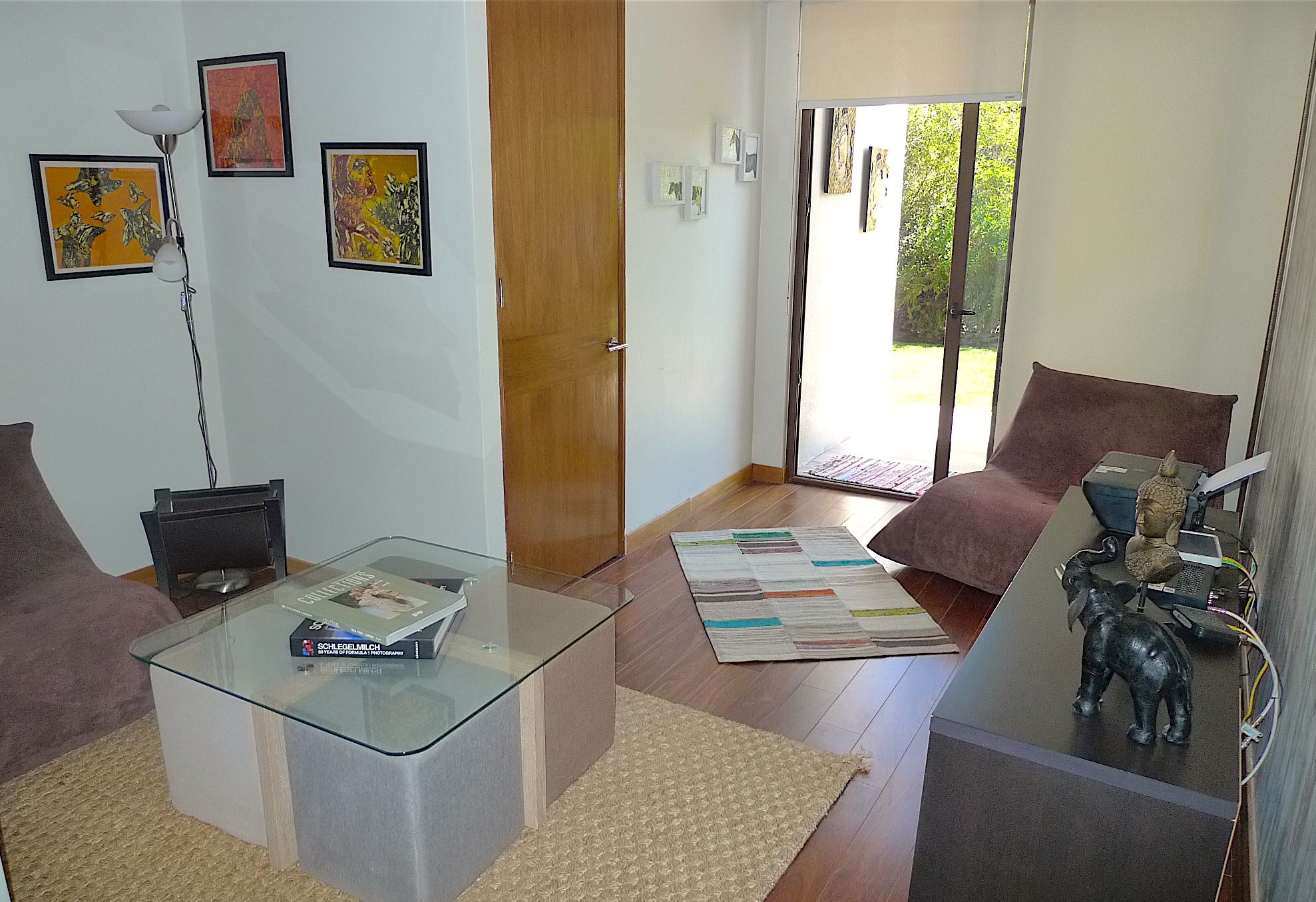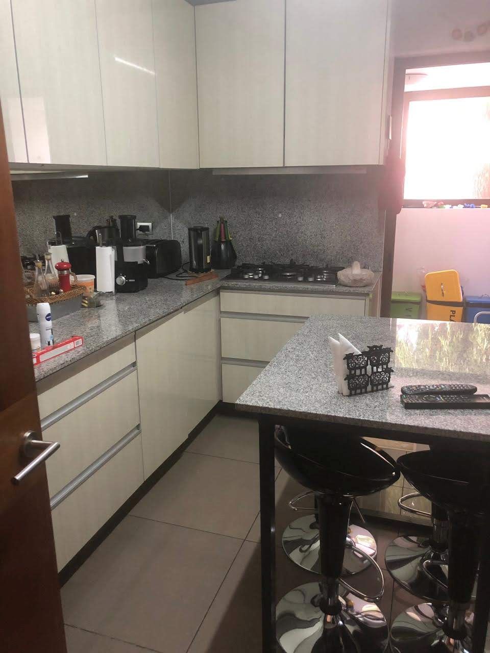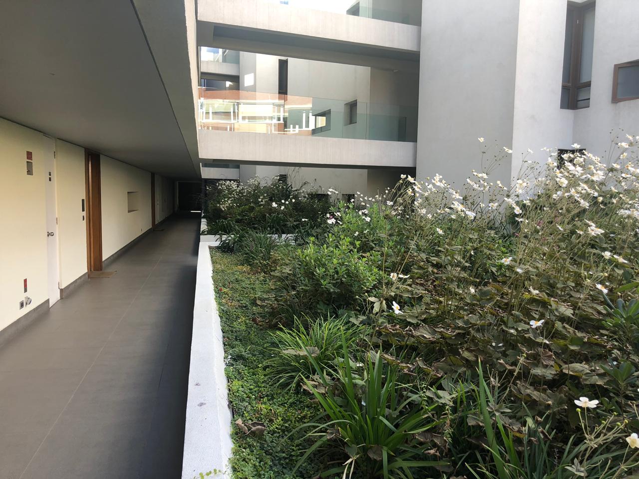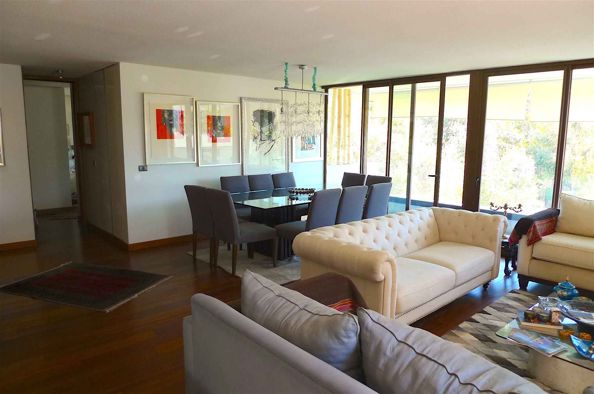 Estupendo departamento Dúplex en primer piso con vista despejada ubicado en la dehesa con 100 metros de jardín de uso y goce exclusivo destinatario, con una terraza de 80 metros y bodega hecha en obra a parte de la bodega del estacionamiento .Nivel acceso hall de entrada todo con piso de madera, baño de visita, cocina equipada con isla y ,logia, servicios completos. Living y comedor separados con salida terraza dormitorio principal en suite de un buen tamaño con un amplio walking closet. Nivel Subterráneo, sala estar un dormitorio en suite, dos dormitorios que comparten un baño, ventanas de Termopanel ,calefacción por losa radiante . El departamento esta en excelentes condiciones, el edificio cuenta con piscina sala de eventos ,lockers y duchas para el personal de servicio estacionamiento de visitas y seguridad las 24 horas.