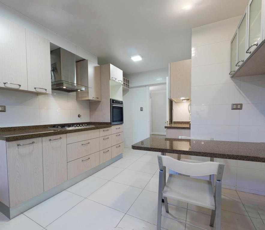Exclusivo departamento con jardín privado en un segundo piso elevado, en un maravilloso condominio de categoría estilo Georgian rodeado de un parque 15.000 metros cuadrado. Orientación nor-poniente con vista privilegiada son 140 metros útiles mas terraza que da un jardín de 170 metros de uso exclusivo. Hall de entrada de mármol, piso de madera natural en todo el departamento, ventanas termopanel Kommerling en todo el departamento, cocina equipada living y comedor con salida al jardín. Tres dormitorios el principal en suite los otros dos de buen tamaño con un baño y servicios completo con sala estar. Dos estacionamientos subterráneos y amplia bodega. Condominio cuenta con piscina panorámica bosques nativos dos departamentos por piso, vigilancia las 24 horas, sistema de cámaras e iluminación de alta potencia recién renovado