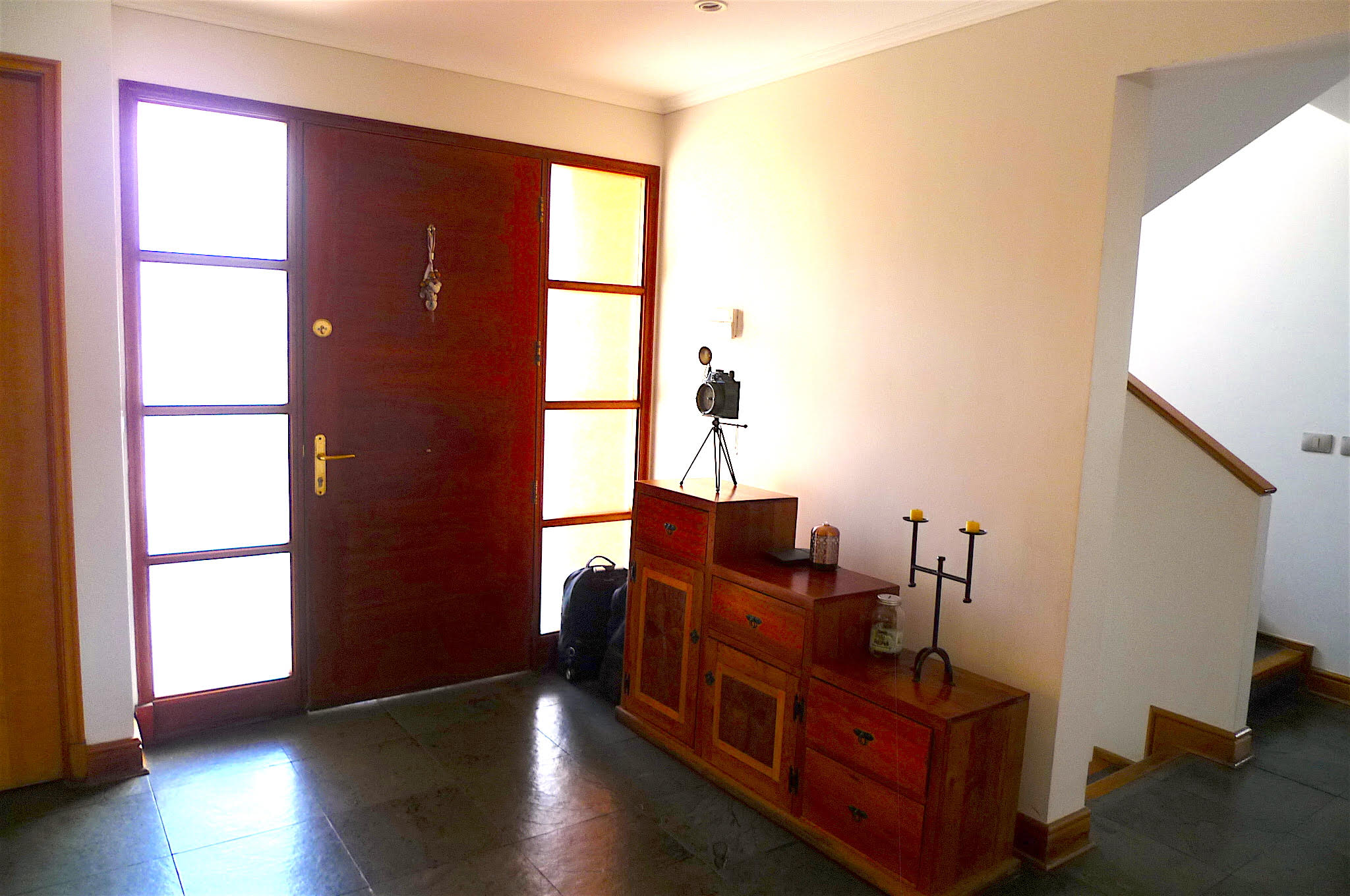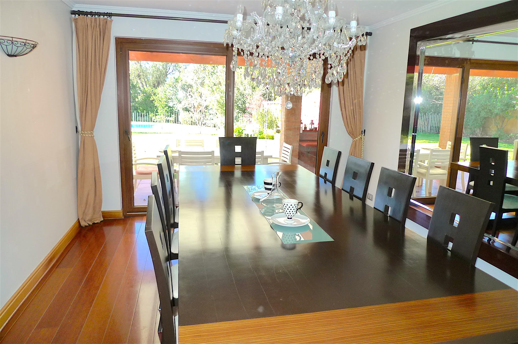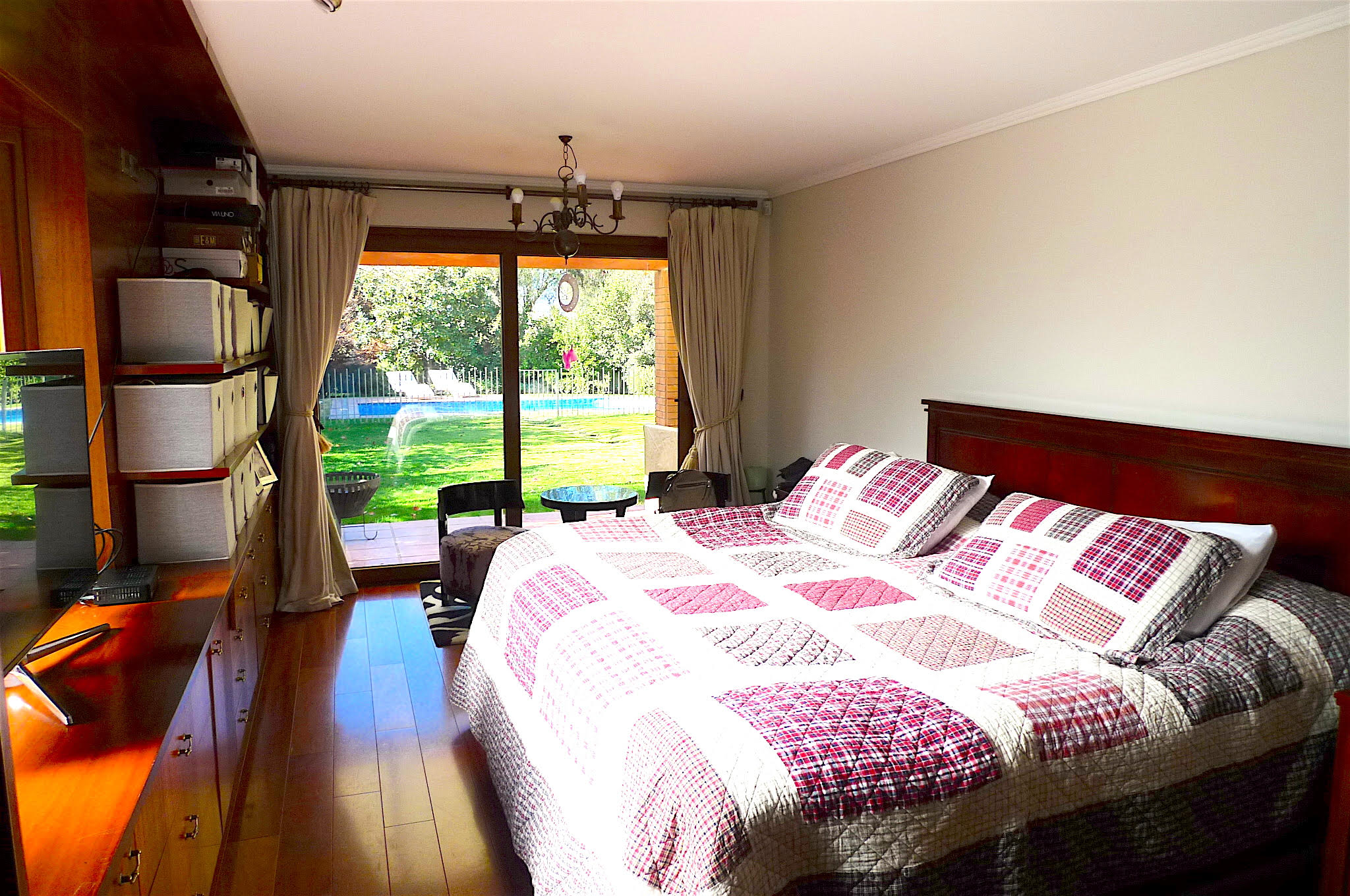 Paz y tranquilidad, rodeada de naturaleza, en un sector seguro que te dará la calidad de vida que siempre soñaste para ti y tu familia. Hermosa casa estilo inglés, en condominio a pasos del colegio Everest ,Monte tabor ,Santiago College con muy buena conectividad. Primer Piso: Hall de entrada baño de visita, estupenda cocina con comedor de diario, servicios completos con piso flotante, logia cerrada, living y comedor separados con salida terraza, piso de madera en living comedor dormitorios ,piso dos y subterráneo toda la casa con ventanas de PVC. Dormitorio principal con salida terraza en suite con walking closet con una vista privilegiada orientación oriente ,terraza con quincho en obra jardín formado y piscina. Segundo Piso: sala estar con balcón ,tres dormitorios de buen tamaño ,dos baños completos. Subterráneo : Una gran sala de estar con una separación para un escritorio. Estacionamientos para tres autos cómodos ,seguridad las 24 horas