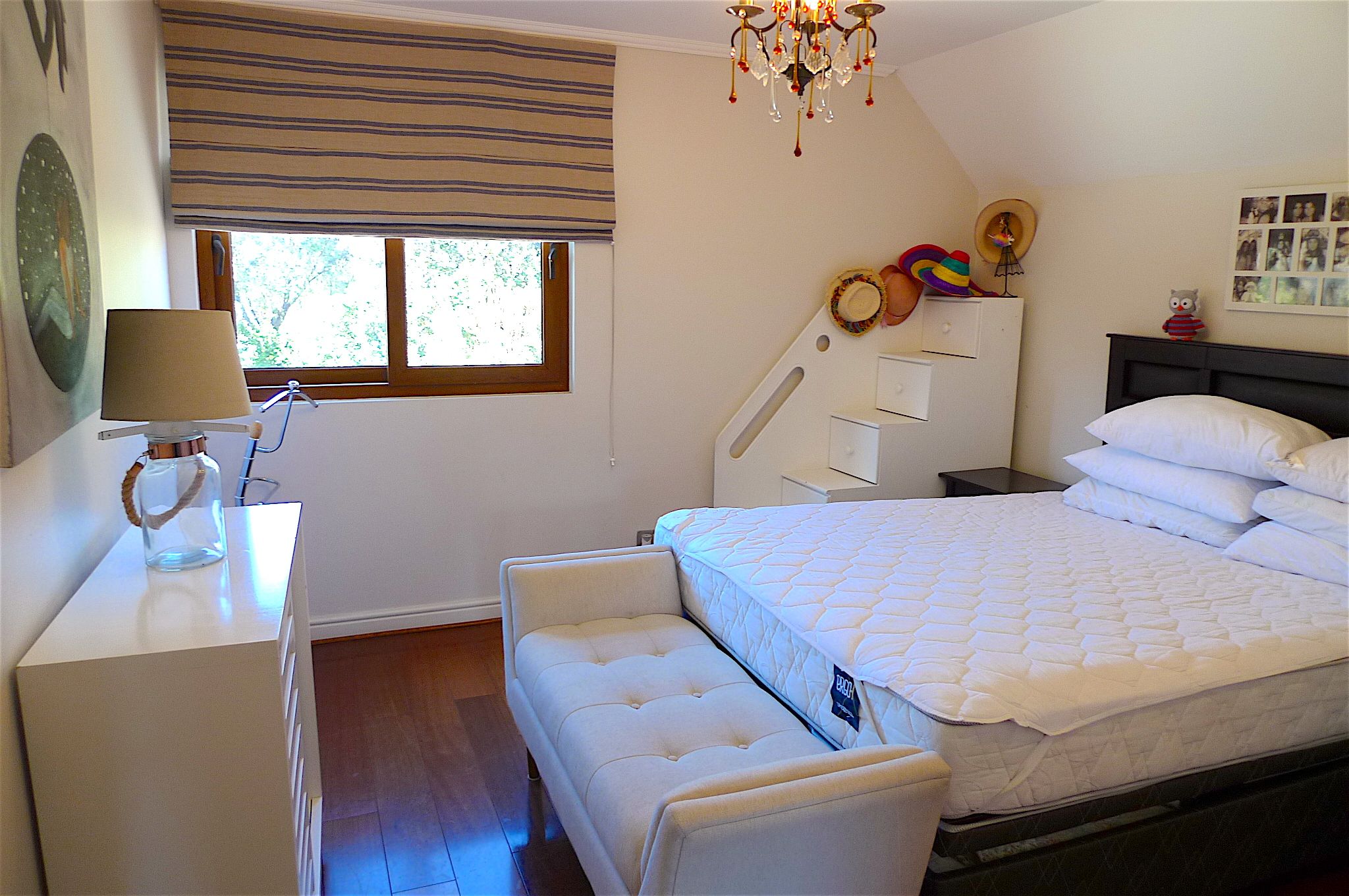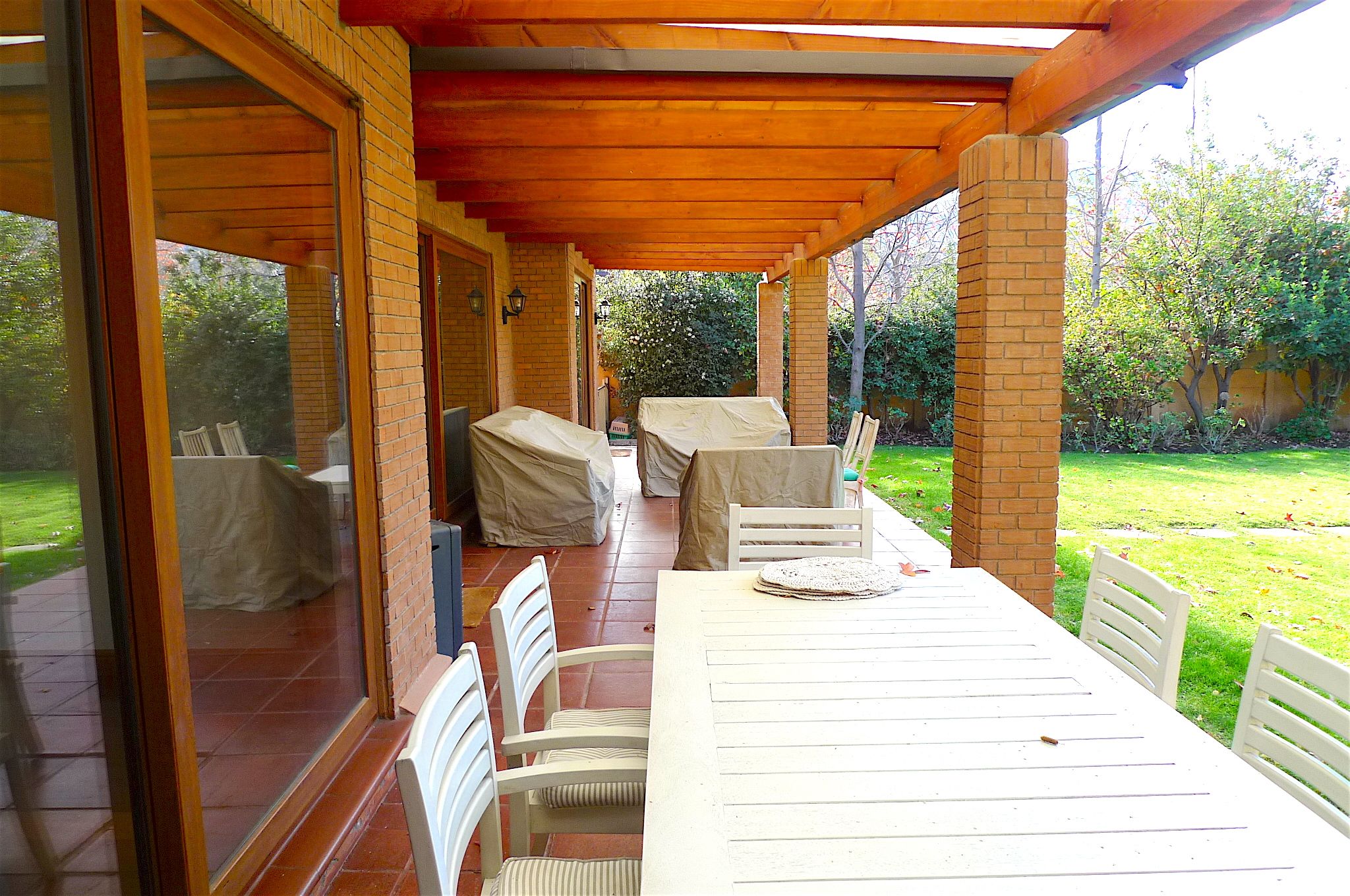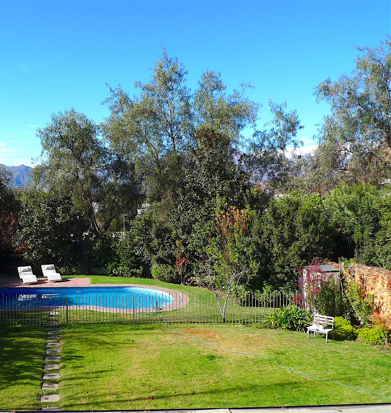 Paz y tranquilidad, rodeada de naturaleza, en un sector seguro que te dará la calidad de vida que siempre soñaste para ti y tu familia. Hermosa casa estilo inglés, en condominio a pasos del colegio Everest ,Monte tabor ,Santiago College con muy buena conectividad. Primer Piso: Hall de entrada baño de visita, estupenda cocina con comedor de diario, servicios completos con piso flotante, logia cerrada, living y comedor separados con salida terraza, piso de madera en living comedor dormitorios ,piso dos y subterráneo toda la casa con ventanas de PVC. Dormitorio principal con salida terraza en suite con walking closet con una vista privilegiada orientación oriente ,terraza con quincho en obra jardín formado y piscina. Segundo Piso: sala estar con balcón ,tres dormitorios de buen tamaño ,dos baños completos. Subterráneo : Una gran sala de estar con una separación para un escritorio. Estacionamientos para tres autos cómodos ,seguridad las 24 horas
