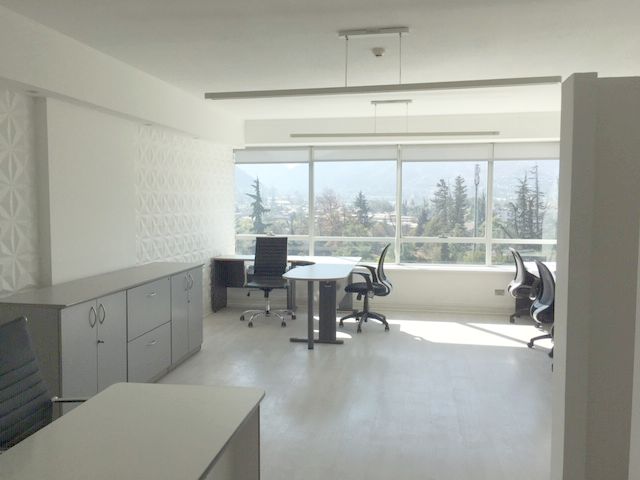 Se arrienda espectacular y moderna oficina de 90 metros aproximado. Son dos oficinas unidas que cuenta con Kitchen y Baño , Dos accesos Ubicación Privilegiado Conectividad autopista costanera Servicios urbanos cercas ) bancos - restaurante y otros ) Zona con estacionamiento de visita A pasos del portal la dehesa, con dos estacionamientos y una bodega. contactar Fernanda Casado celular +569-66595345