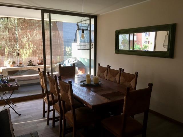 Precioso departamento en el TRANQUE con excelente ubicación, a pasos del Portal de la dehesa , zona urbana de servicios , colegios de la zona (los alerces y otros ) .Gran conectividad a autopista costanera del Norte y grandes vías. Amplio Hall de entrada , living y comedor juntos . terraza , baño visita y cocina equipada y logia techada. Dormitorio principal en suite con acogedora terraza y con dos walking closet. En otro ala del departamento cuenta con salita de estar y dos dormitorios espejos que comparten baño. Un estacionamiento , Una bodega .Departamento en excelente estado.Piso de todo el departamento en porcelanato tipo madera y ventanales en PVC. Termo panel.