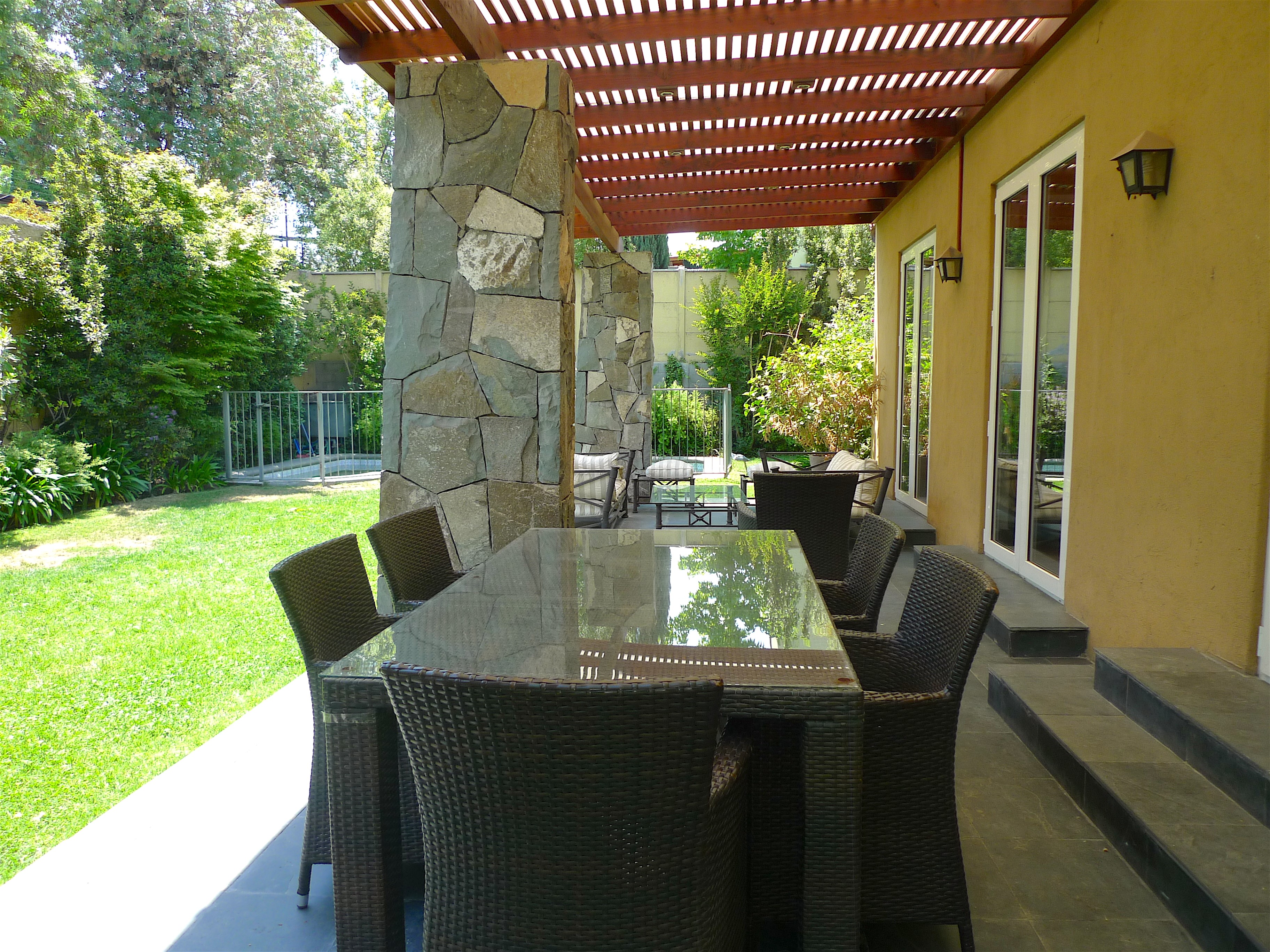 Estupenda casa en condominio ubicada en el mejor sector de san Carlos de Apoquindo de doble altura muy iluminada, cerca del colegio cumbre, juanita de los andes ,comercios bancos ,supermercados y farmacia. Primer Piso : Hall de entrada, sala de estar con salida a la terraza, baño de visita ,cocina de excelente tamaño con comedor de diario logia ,patio de servicio techado bodega y servicios completos, un escritorio, dormitorio principal en suite con Walk in closet con salida a la terraza . Living y comedor separados con salida a terraza techada, jardín formado con piscina y un quincho hecho en obra. Segundo Piso :Sala estar con bodega tres dormitorio uno en suite y los otros dos comparten un baño de muy buen tamaño. Subterráneo :que es otro dormitorio ,o gran sala de juegos totalmente independiente con otra entrada. El condominio cuenta con estacionamientos de visitas.
