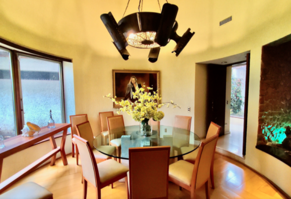 Espectacular casa de dos pisos rodeada de un jardín formado y gran quincho separado de la casa. Ubicada en un lugar tranquilo en un sector consolidado ,con excelente conectividad 692 metros útil y 2.061 de terreno y con cambio en el plan regulador el cual se promulgara se definirá el 17 de diciembre del 2022. Primer Piso: Hall de entrada, baño de visita, closet de visita ,living y comedor separados, escritorio ,puente vidriado con cascada de agua, jardín interior, Estar familiar con vista al jardín y terraza, jardín interior con pileta y fuente de agua y terraza cubierta, cocina equipada con comedor de diario, tres bodegas patio servicio ,closet para bicicletas con dos dormitorios con salida a jardín, Suite principal de 27 metros con living, walking closet, baño mármol con hidromasaje doble, ventanal panorámico al jardín y ventana interior, amplio solárium privado frente a la suite piedra laja. Segunda suite con walking closet y baño hidromasaje con estar entre las dos suite todo el piso de mármol Gran quincho, asador circular con campana de cobre, mesón lavaplatos, mesa de pool, sala de cine y fiesta de 36 metros, taller de pintura ,baño, camarín, sauna, baño y bodega de 10 metros. Piscina con cascada Estacionamiento techado para 3 autos ,sin techo para cuatro ,máximo 9 con dos portones motorizados, excelente seguridad con cámaras alarma, red cableada 24 puntos y wifi con 7 routers, energía trifásica, central telefónica 18 anexos y riego automático en 20 zonas Segundo Piso Escala de mármol con espectacular reja de fierro forjado gran sala de estar, cuatro dormitorios con closet ,dos baños con tinas hidromasaje ,amplios closet y dependencias para maletas calefón y centro de comunicaciones. Casa Colonial: Arquitecto John Baüerle - Constructor: Armando Sanz Artesano: Raúl Celery, quien realizo los trabajos a mano de dos faroles en la entrada, lampara en el comedor de cobre y lápiz lázuli, reja de la escalera y los 5 plafonier del 2°piso, el farol y el asador con campana de cobre martillado del Quincho
