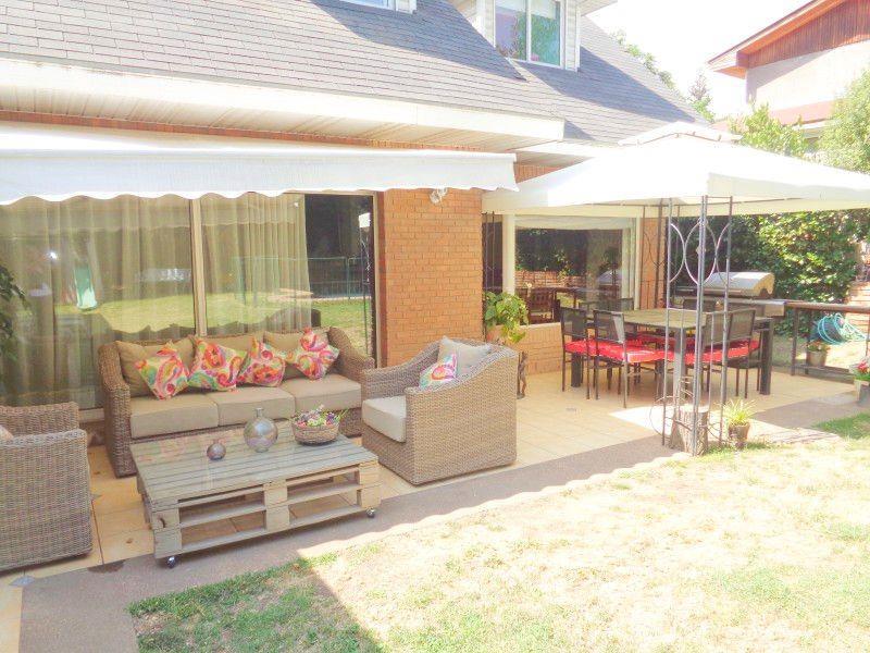 Preciosa casa de dos pisos estilo Georgian en calle muy tranquila Primer Piso: Hall de entrada, baño de visita, cocina de buen tamaño con comedor de diario ,patio de servicio y logia, living y comedor separados con salida a terraza, dormitorio principal en suite con walk in closet de gran tamaño con espacio para escritorio con salida a la terraza ,servicios completos. Segundo Piso: tres dormitorios de buen tamaño con la posibilidad de hacer un cuarto , sala de estar, bodega y un baño completo toda la casa ventanas de Termopanel un amplio jardín con piscina terreno plano y estacionamientos para cuadro autos.