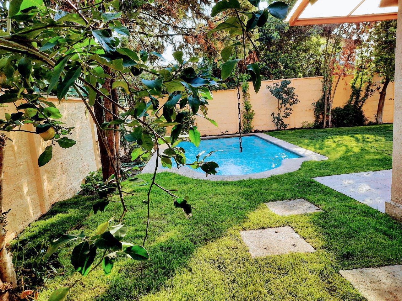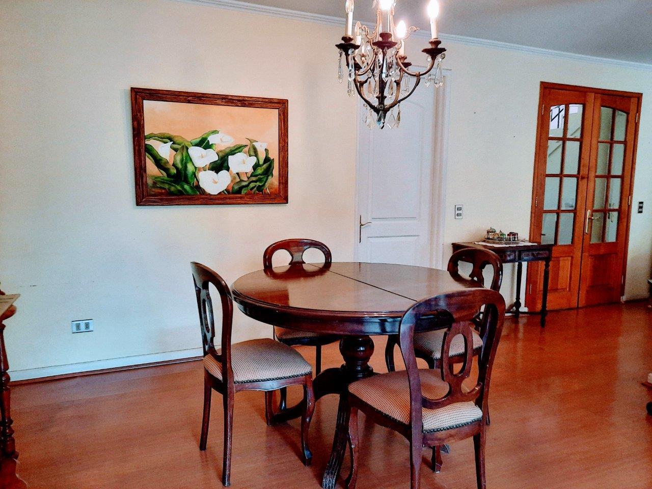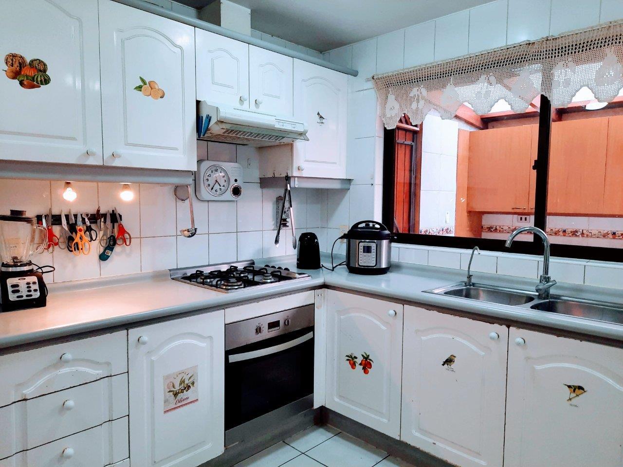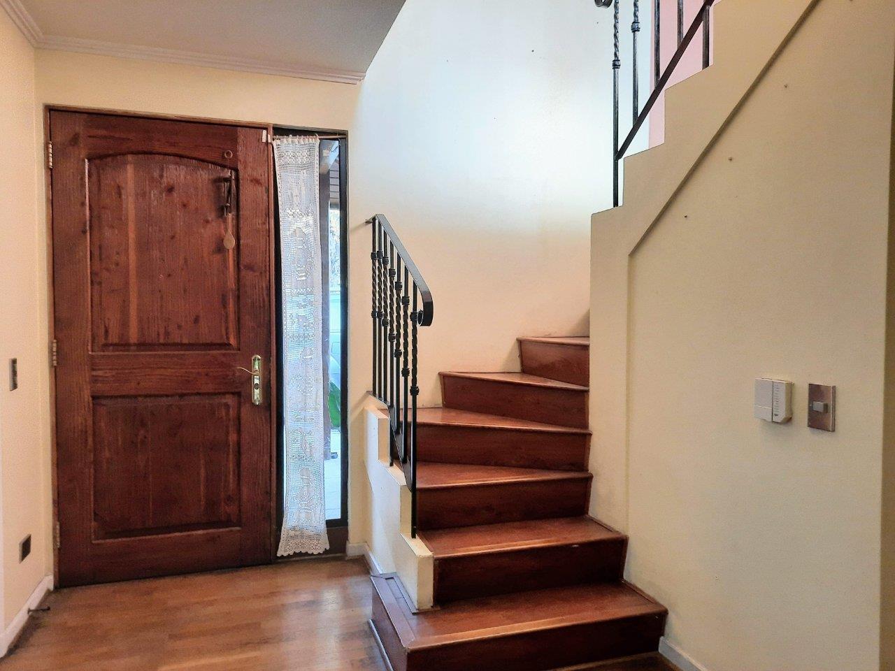 Casa ubicada en seguro Condominio, cercana a Colegios Huinganal y Mayflower. Primer Piso: Linving y Comedor a parte, Baño de visitas, Amplia cocina, logia enteramente techada y amoblada, Quincho full equipado con asador, horno y quemadores. Piscina Dormitorio principal en suite con escritorio/dormitorio Pieza y baño de Servicio Segundo Piso: Cuatro dormitorios y 2 baños Sala de estar