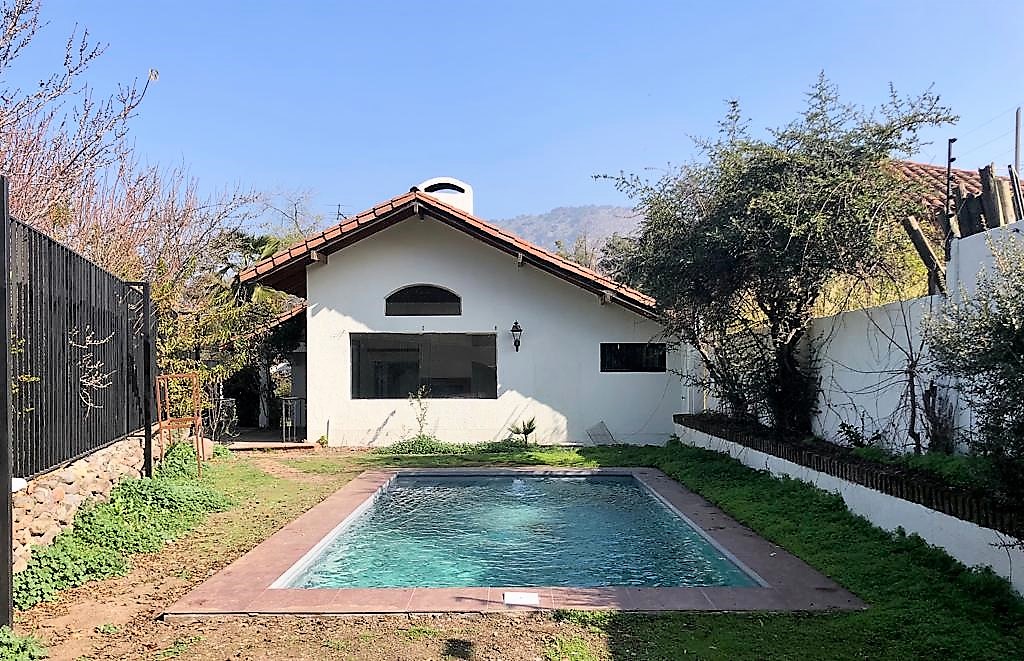 Encantadora casa remodelada a los pies del cerro con una vista envidiable y un paisaje único la entrada de la casa es amplia y permite la ubicación de varios autos sumando a un espacio que puede ser a futuro un lugar de encuentro de juegos y otros. Se puede acceder por puerta curva o bien por otra puerta que da dormitorios de los niños, se mejoro la altura de la rejas de ambos costados una de ellas que da al parque de bicicletas para dar mayor visibilidad y seguridad, la propiedad cuenta con un terreno de 1.200 metro. Una vez ingresando a la propiedad nos encontramos con el hall y hacia la derecha nos encontramos con el comedor que fue dividido por una mampara negra trasparente de modo de incorporar la isla de la cocina y así converger a la cocina que esta recién remodelada y con todo el equipamiento nuevo. Una vez ingresando al comedor nos encontramos con un amplio living con vista espectacular en todo los sentidos ,ambas zonas comedor y living miran al parque y a una terraza techada y en el sector living nos encontramos con un segundo patio interior donde se encuentra la piscina y un espacio cerrado que se puede usar como quincho de bajas queda un espacio para escritorio como con dos dormitorios y sus respectivos baños, sala estar,