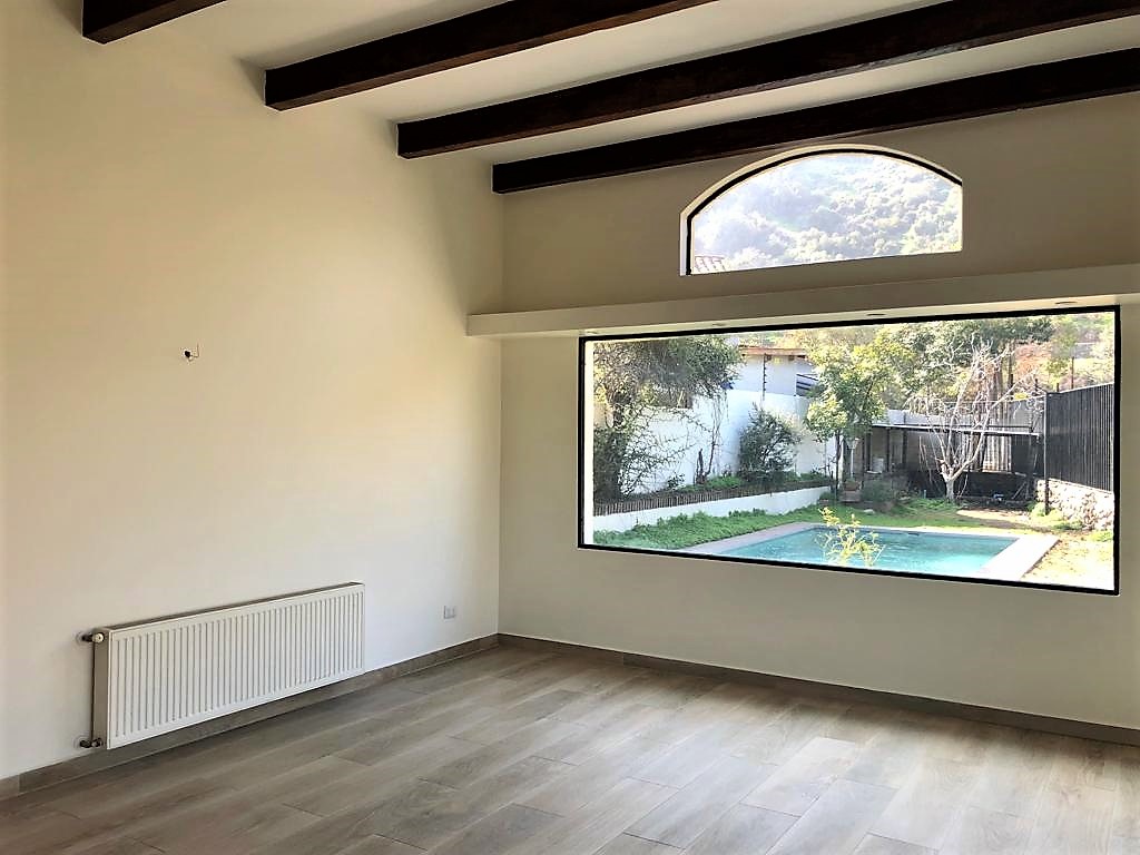 Encantadora casa remodelada a los pies del cerro con una vista envidiable y un paisaje único la entrada de la casa es amplia y permite la ubicación de varios autos sumando a un espacio que puede ser a futuro un lugar de encuentro de juegos y otros. Se puede acceder por puerta curva o bien por otra puerta que da dormitorios de los niños, se mejoro la altura de la rejas de ambos costados una de ellas que da al parque de bicicletas para dar mayor visibilidad y seguridad, la propiedad cuenta con un terreno de 1.200 metro. Una vez ingresando a la propiedad nos encontramos con el hall y hacia la derecha nos encontramos con el comedor que fue dividido por una mampara negra trasparente de modo de incorporar la isla de la cocina y así converger a la cocina que esta recién remodelada y con todo el equipamiento nuevo. Una vez ingresando al comedor nos encontramos con un amplio living con vista espectacular en todo los sentidos ,ambas zonas comedor y living miran al parque y a una terraza techada y en el sector living nos encontramos con un segundo patio interior donde se encuentra la piscina y un espacio cerrado que se puede usar como quincho de bajas queda un espacio para escritorio como con dos dormitorios y sus respectivos baños, sala estar,