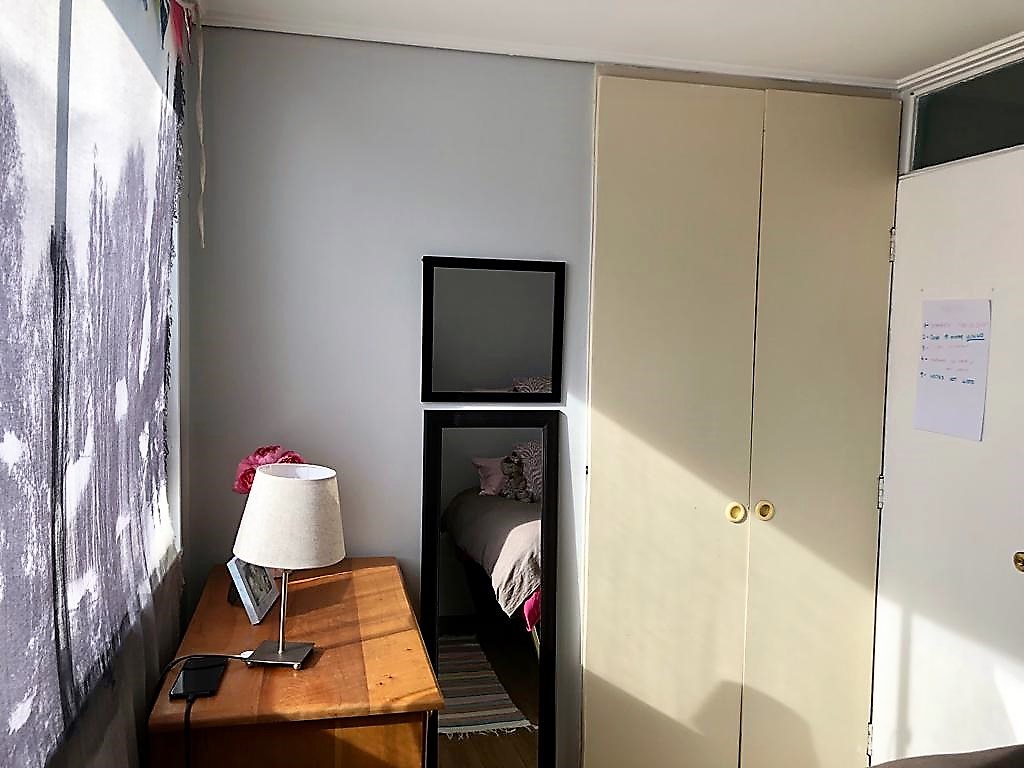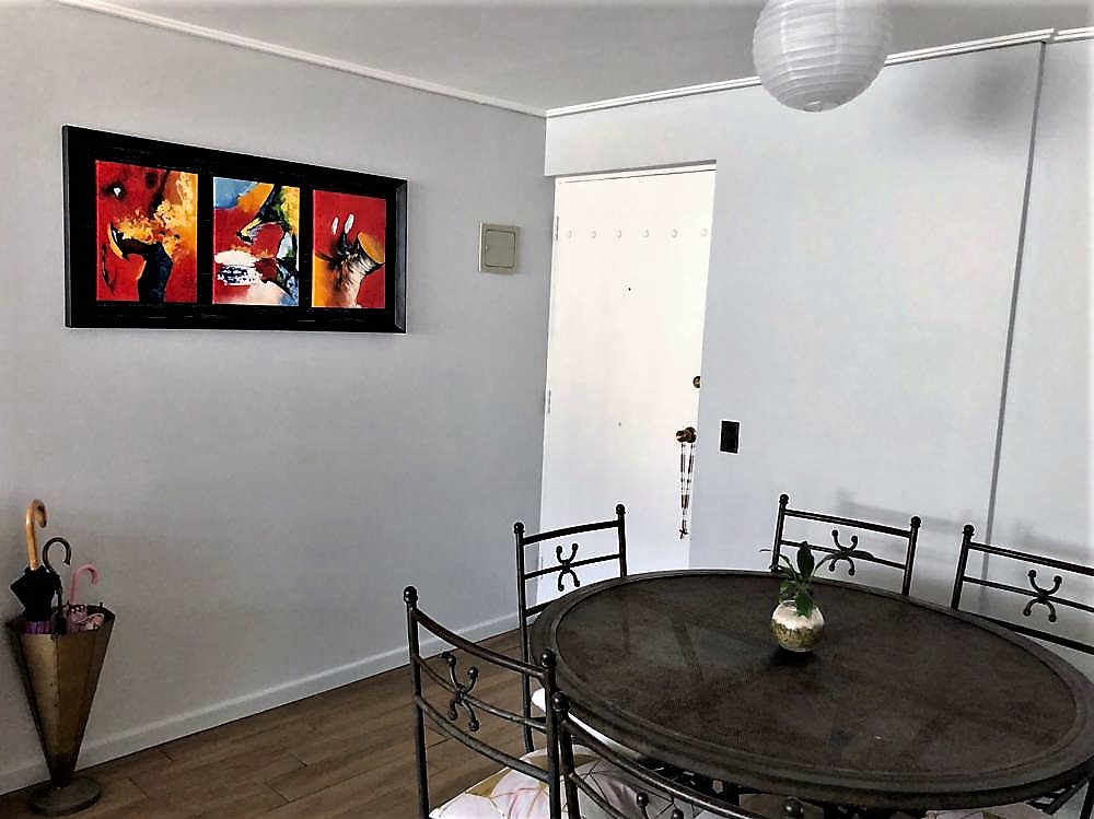 Gran oportunidad para inversionista Departamento en un quinto a pasos de avenida las condes y el colegio Hebreo. Sin ascensor con gasto común muy bajo nos encontramos con living y comedor juntos muy luminoso, cocina con piso de porcelanato, dos dormitorios que comparten un baño completo y al final del pasillo con el dormitorio en suite con terraza con vista despejada ,un estacionamiento y bodega. No paga contribuciones por su tamaño.